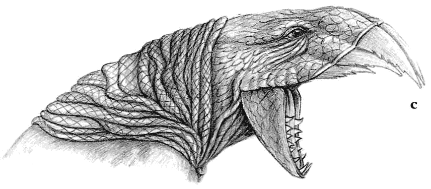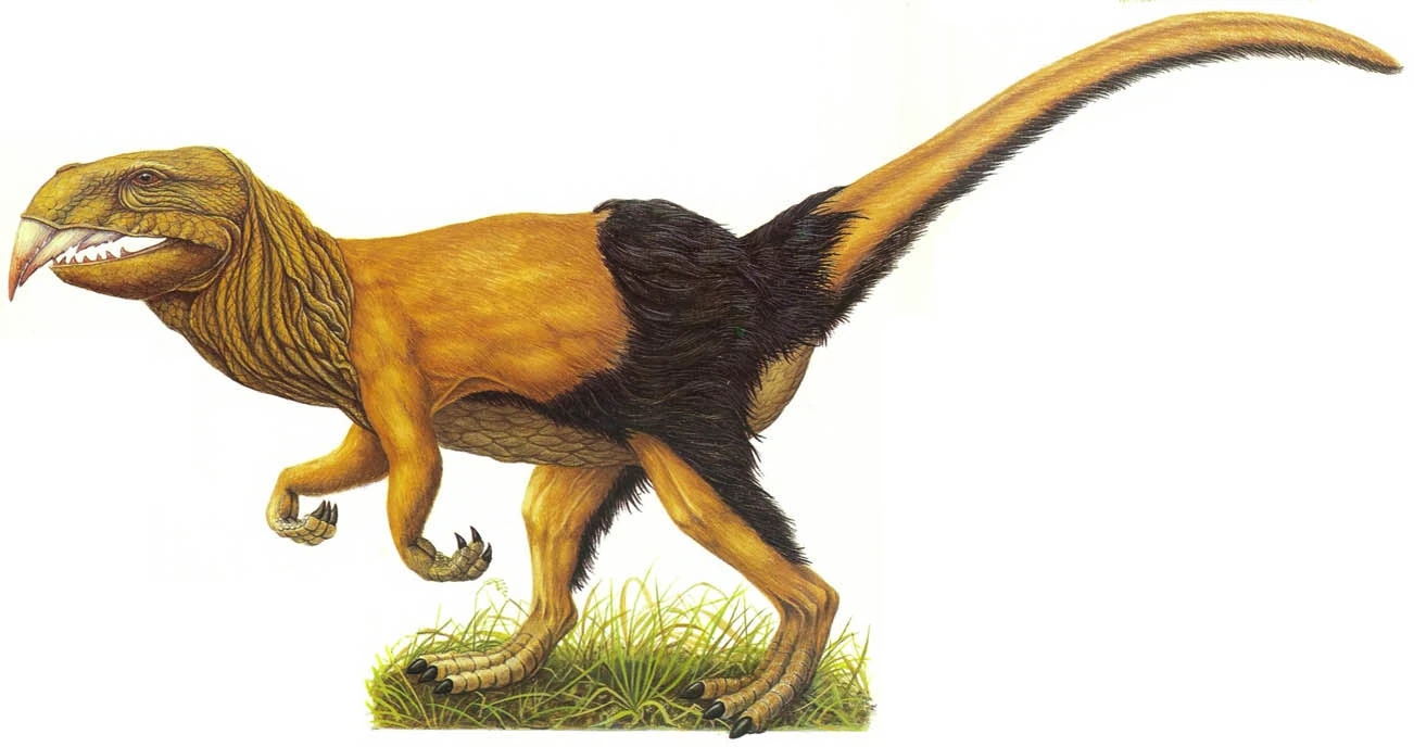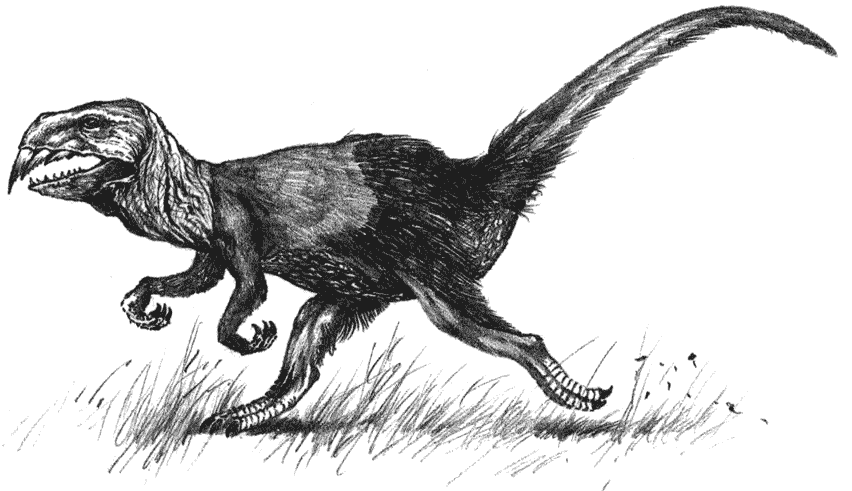 The Cutlasstooth, Caedosaurus gladiadens, is a large, saber-toothed maniraptoran from the grasslands of the Pampas, from The New Dinosaurs: An Alternative Evolution. It is similar to Smilodon.