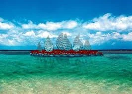 Above the waterline, the exposed surface is covered by red algae. Like the reef algae, these organisms build structures from calcium, forming small trunks upon which the algal strands cling, streaming in the wind. The algae are a kind of farm, providing much of the nutrition for the siphonophore colony. Carbohydrates generated by the algae through photosynthesis are carried throughout the colony by a vascular system which takes food to every individual member. In return, the red algae are provided with a safe base and even a supply of fresh water. When rainfall does not provide this, specialist individuals in the colony can desalinate seawater and pump it to the upper surface.