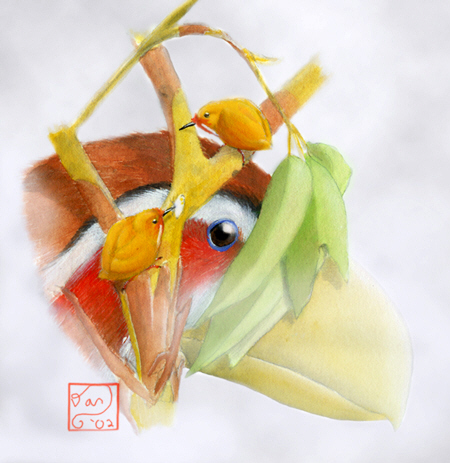 Slightly larger and more solitary than the johnny gobbler, the spectacled gobbler is a forest species, preying upon the large ducks that browse the understory.
