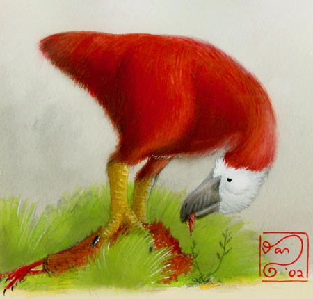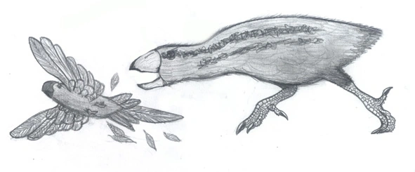 On Spec, true ratites appear to have never evolved, the opportunity never having presented itself with the continued existence of small bipedal non-avian dinosaurs across the K-T boundary. On Aotearoa however, one group of large flightless palaeognaths, the diablornithiforms, has evolved. Unlike the placid herbivorous moas and omnivorous kiwis of Home Earth's New Zealand, the diablornithids, commonly called the gobblers due to their ravenous eating habits, are fearsome carnivores.