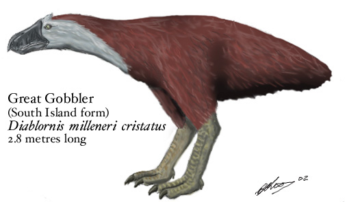 Crested great gobbler, Diablornis milleneri cristatus (Aotearoa, South Island)