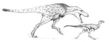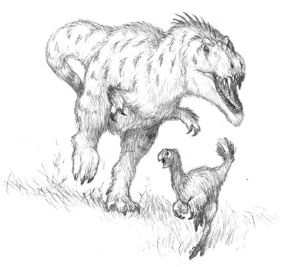 With only a few notable exceptions such as the Volleur, which is still undergoing observations, most errosaurids are small, cursorial predators. The courour (Errosauroides canadiensis) is a perfect example of these smaller predators, being of lesser size (around 2.5 meters) and with a relatively slight built, and like all errosaurids, adorned with a coat of insulating plumage and atrophied arms. These little tyrannosaurs range across the northern prairies of North America, where they hunt singly for small game or occasionally gather together to hunt therizinosaurs, (possibly ceratopsians, but this issue is still under debate) and singers. This niche also brings them into occasional competition with the smaller North American Strider, which hunts much of the same prey. Analogous to the Home-Earth coyote as the North American Strider is to a Home-Earth fox, the Courour is as much as scavenger as it is a predator, and having a wider range of prey to choose from than the North American Strider, is better able to expand its resource base when food is scarce.