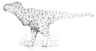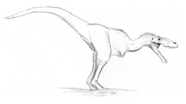 However, swinging the pubis all the way back to the ileum as in a deinonychosaur’s pelvis would have created another problem. Most predatory theropods rest in a horizontal pose with the body supported on the end of the forward-facing pubis. Deinonychosaurs, with their aft-directed pubes are required to sit in a more upright posture that, thanks to their lightweight skulls, is not a problem. A tyrannosaur’s massive skull on the other hand would impose a terrible burden on the spine if it sat in this position for a prolonged period. Perhaps the errosaurs’ slightly aft-facing pubis forms a compromise that increases stride-distance while allowing the animal to sit horizontally.