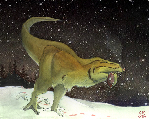 The mere mention of “meat-eating dinosaur” conjures up mental images of the bloodthirsty tyrannosaurs, the most infamous of the large carnivorous dinosaurs to us puny humans. Mounted skeletons of the infamous Tyrannosaurus rex, the terror of the Late Cretaceous, are a guaranteed drawcard to any museum gallery. For the spexplorer, the prospect of seeing living, breathing tyrannosaurs is both a thrilling and fearful prospect. It is thus, difficult to decide whether to be relieved or disappointed upon discovering that most of Spec's tyrannosaurs are small, fluffy critters not much bigger than a large wolf; a relief to those expecting the worst, but a disappointment for those who have fond memories of watching Jurassic Park in their youth. However, the some species of tyrannosaur still retain the great size of their giant ancestors.