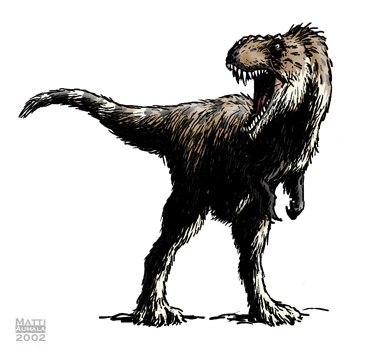 All living tyrannosauroids belong to a single, but very diverse lineage, the Errosauridae that contains over thirty living species in Spec. Immediately noticeable on any errosaurid are the furry protofeathers that cover almost the entire body. Beneath this fluffy-coat are a suite of adaptations that have allowed the errosaurs to become the most highly cursorial of all living theropods - these dinosaurs can not only move fast but can maintain pursuit over considerable distances.