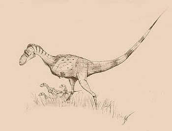 The khinner (Errosauroides mongoliensis) is a small and swift errosaurid, growing up to lengths of 10 feet long, that lives in Mongolia and northeastern China. Preferring smaller prey than their cousins, the striders, khinners generally target mammals and birds as food, although they will often gather into packs and attack therizinosaurs during times of famine. They appear to be more agile than their relatives, the Oakeley.